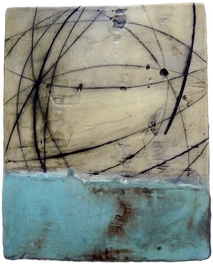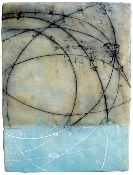 Lines and Spheres 2, 2010, Encaustic, oil on panel, 8" x 10" x 2" Sold