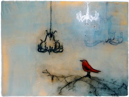 Red Bird Illuminated, 2010, Encaustic, oil on panel, 16" x 12" x 1" Sold