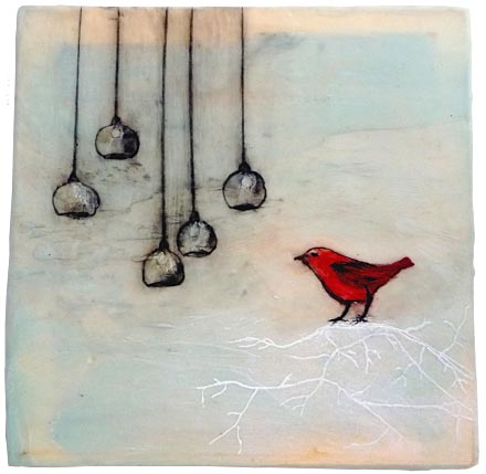 Red Bird 2, 2010, Encaustic, oil on Panel, 10" x 10" Sold