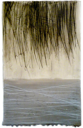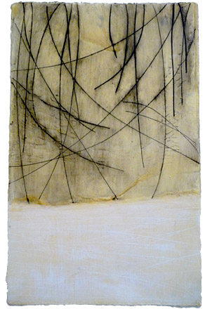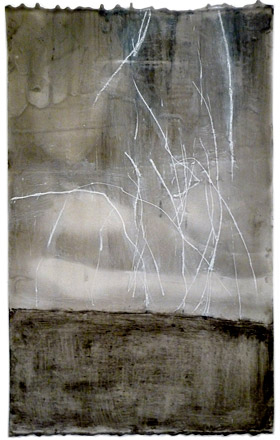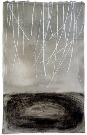 Gray with Falling Lines, 2011, Encaustic, oil on paper, 16" x 10" (24" x 18" framed) Sold