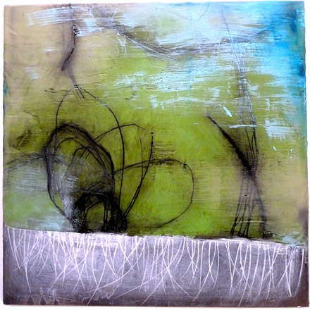 Green Internal Landscape, 2011, Encaustic, oil on panel, 18" x 18" x 1"