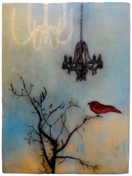 Illuminated Tree with Bird, 2011, Encaustic, oil on panel, 9" x 12" Sold