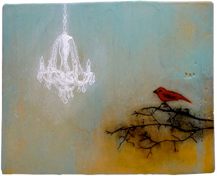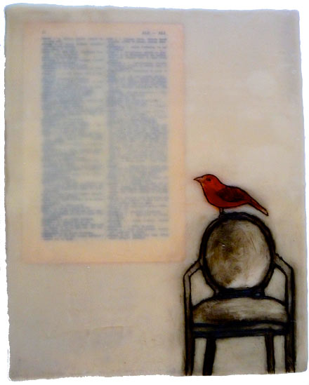 Red Bird with Chair, 2011, Encaustic, oil on Canvas, 8" x 10"