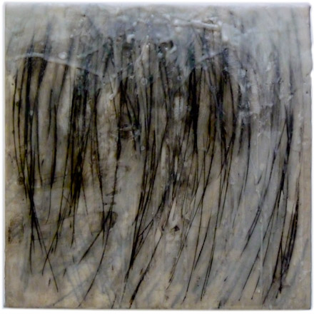 Protected, 2011, Encaustic, oil on canvas, 12" x 12" x 1"