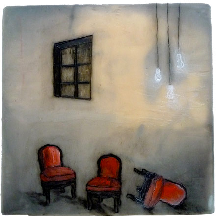 Red Chairs, 2011, Encaustic, oil on panel, 10" x 10" x 1"