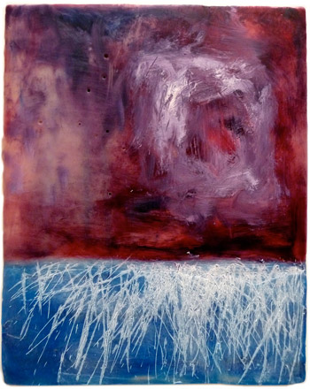 Violet with Scratches, 2011, Encaustic, oil on Canvas, 10" x 8" x 1"