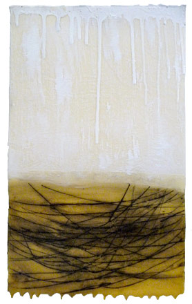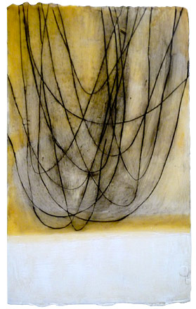 Yellow with Hanging Lines, 2011, Encaustic, oil on paper, 16" x 10" (24" x 18" framed)