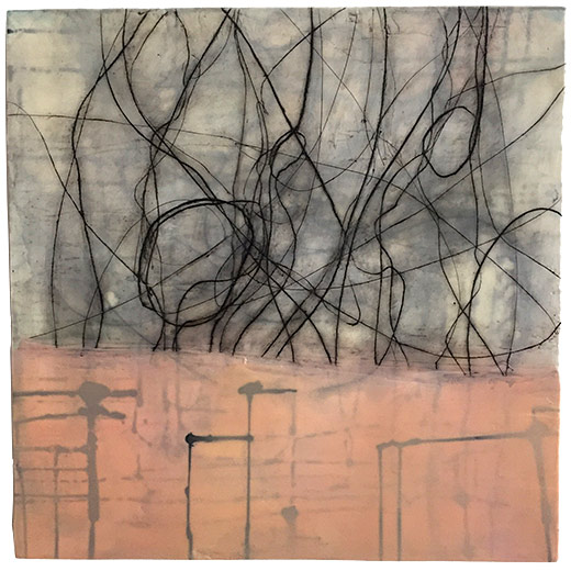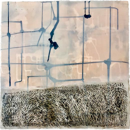 Below the Surface, 2018, Encaustic, oil, ink on panel, 24" x 24"