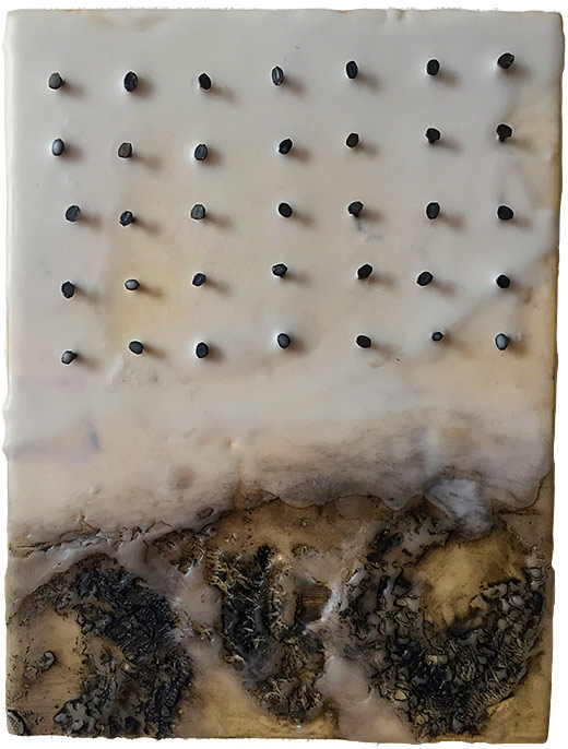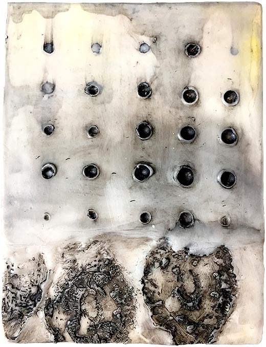Lace Grid, 2018, Encaustic, oil on wood panel, 8" x 6" x 1"