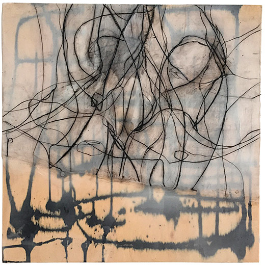 Moving Surface 2, 2019, Encaustic, oil, ink on wood panel, 24" x 24" x 2"