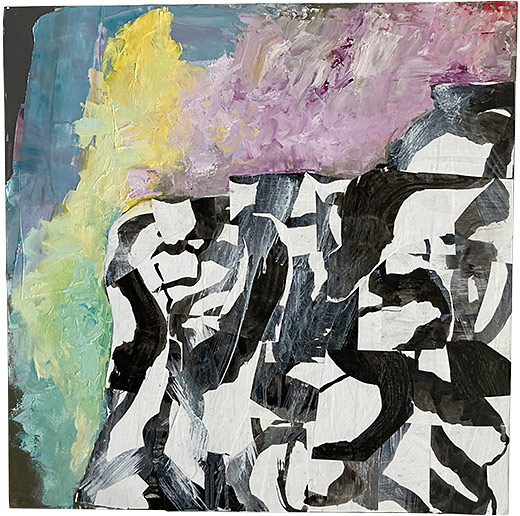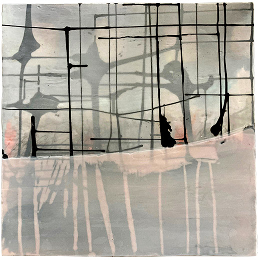 Overlap, 2018, Encaustic, oil, ink on panel, 24" x 24"