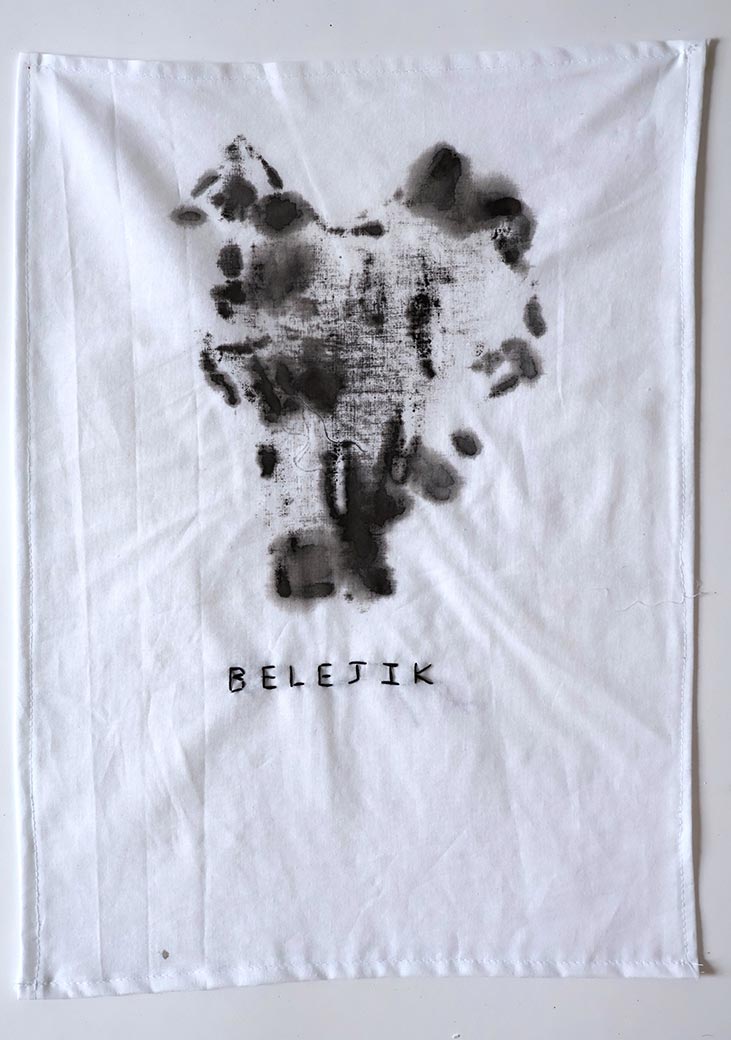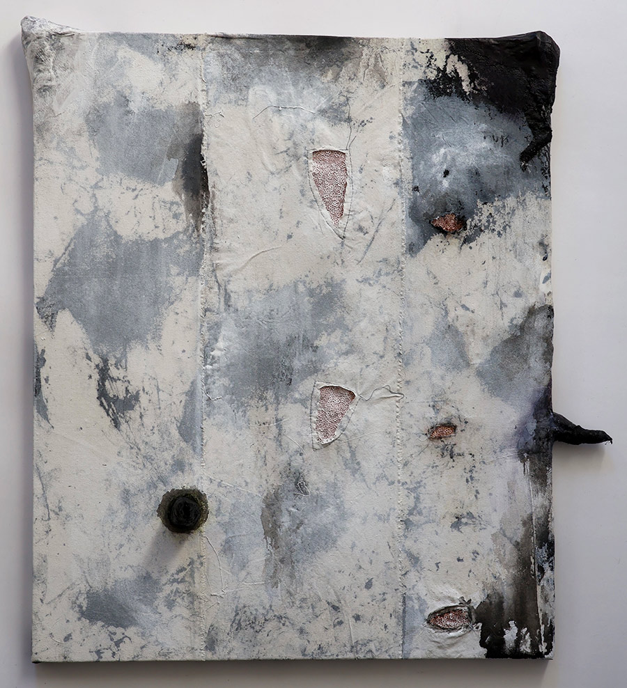 Untitled, 2022, Cotton, ink, acrylic, gesso, paillettes, 25" x 21" x 4"