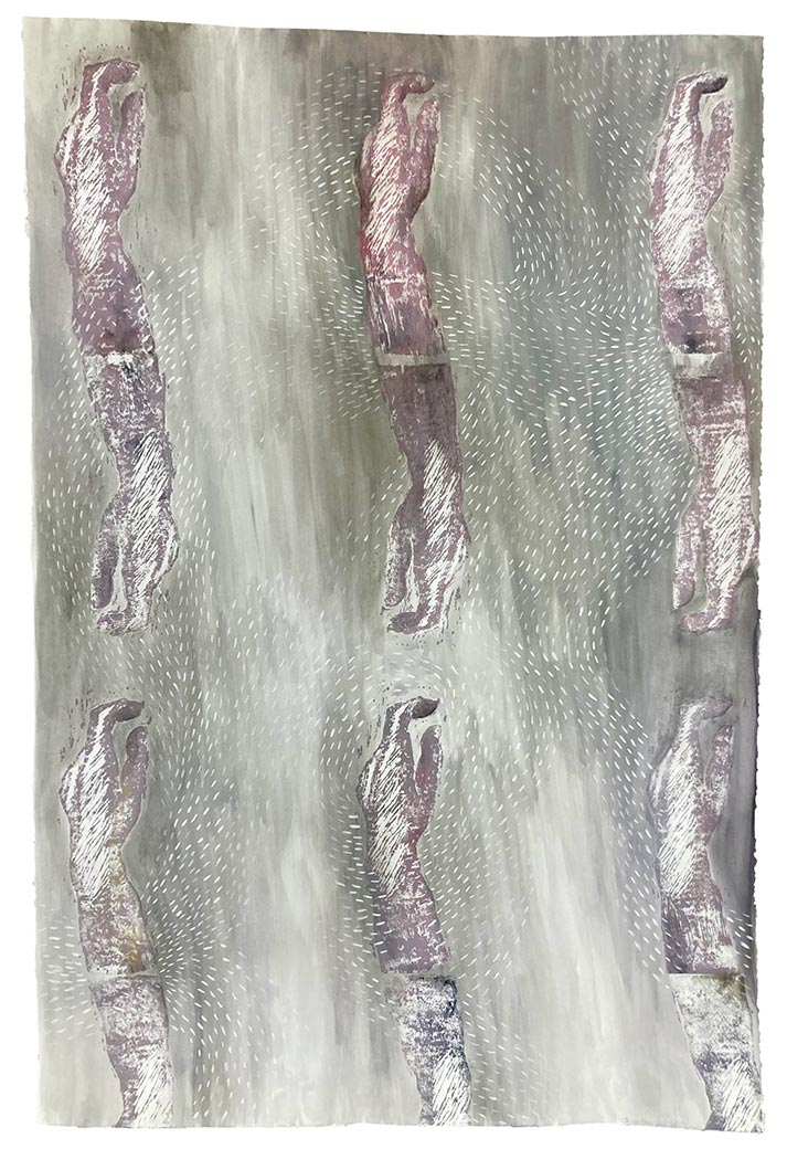 Mother, 2022, Gouache, linoleum cut acrylic print on paper, 44" x 30" x 2" (framed)
