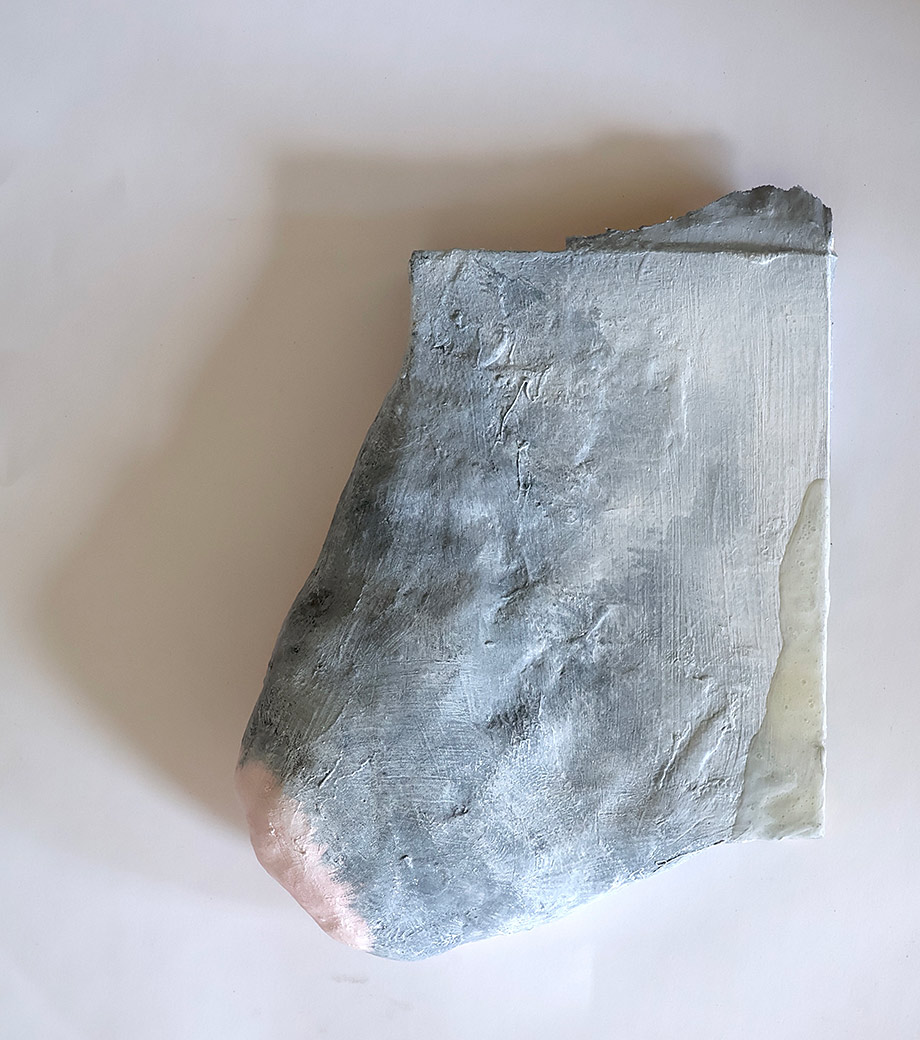 Gray Arm, 2025, Plaster, paper, wood, acrylic, gloss medium, 10" x 7" x 3"