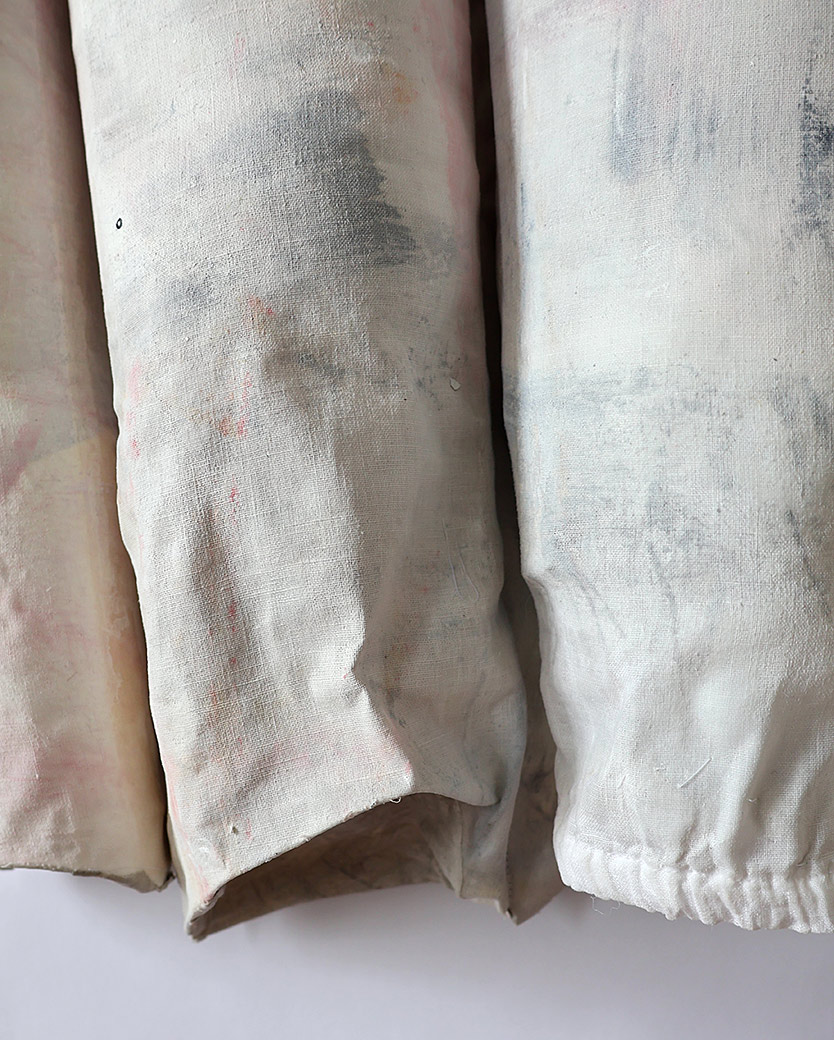 Hold Me (detail), 2025, Cotton, thread, plaster, wood, batting, yarn, acrylic, ink, 18" x 20" x 6"