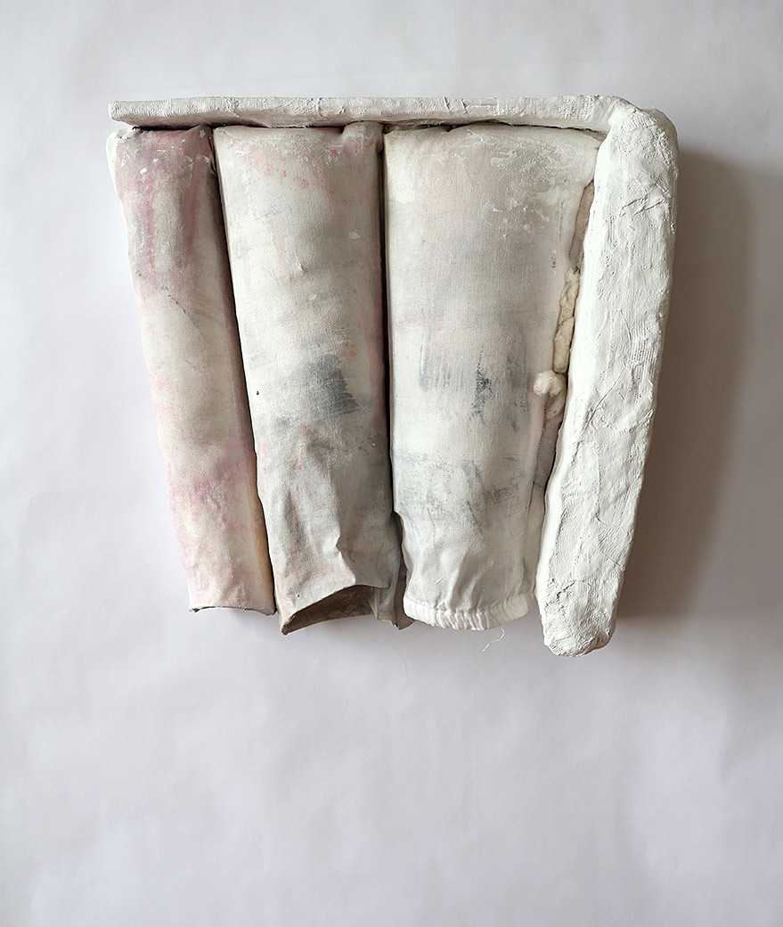 Hold Me, 2025, Cotton, thread, plaster, wood, batting, yarn, acrylic, ink, 18" x 20" x 6"